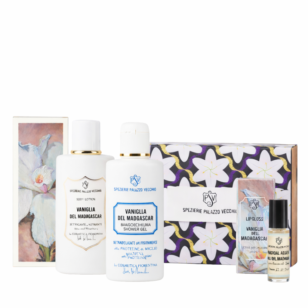 Acqua Mirabile Odorosa di firenze, Bauletto delle rose, Cashmere, Caterina de' Medici, L'uomo di Pitti, Rosa di Damasco, Set da barba, Vaniglia del Madagascar